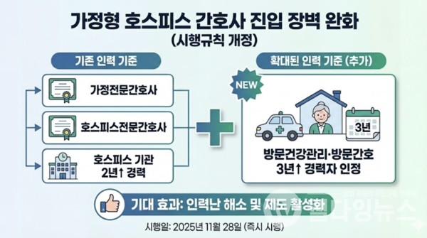 가정형 호스피스 간호사 진입 장벽 낮춘다… ‘방문간호 3년 경력’도 인정