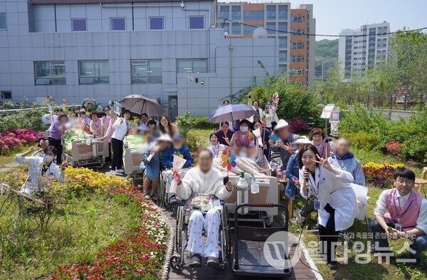 가정의 달을 맞아 음악회를 연 인천성모병원 호스피스·완화의료병동 ©인천성모병원 인천성모병원은 가정의 달을 맞아 호스피스·완화의료병동에 입원 중인 환자와 그 가족들을 위해 특별한 음악회를 최근 개최했다. 병원 옥상정원에서 열린 이번 행사는 음악을 통해 환자와 가족에게 위로와 소중한 추억을 선사했다. 음악회는 부평남부노인문화센터 소속 바이올린·플루트 앙상블