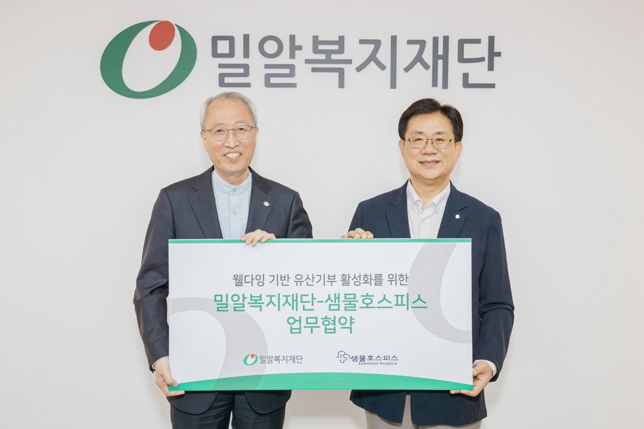 밀알복지재단과 샘물호스피스선교회가 웰다잉 기반 유산기부 활성화를 위한 업무협약을 체결했다. ©밀알복지재단 밀알복지재단(이사장 홍정길)과 샘물호스피스선교회(회장 유원식)는 웰다잉 기반 유산기부 활성화를 위한 업무협약을 체결했다고 밝혔다.지난 16일 서울 강남구 수서동 밀알복지재단에서 진행된 이번 협약은 유산기부와 생애말기 돌봄이 결합된 통합 나눔 체계를 구축