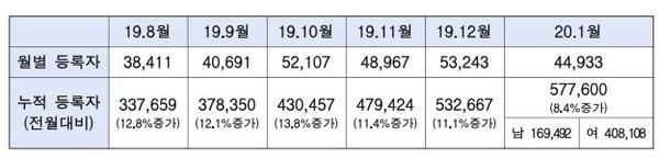 발표에 따르면, 19세 이상 사전연명의료의향서 누적 작성자는 총 57만 7,600명으로 집계됐다. 2019년 한 해 작성자 수는 43만 2,138명으로, 제도 시행 첫해인 2018년(10만 529명)에 비해 약 330% 급증한 수치다.