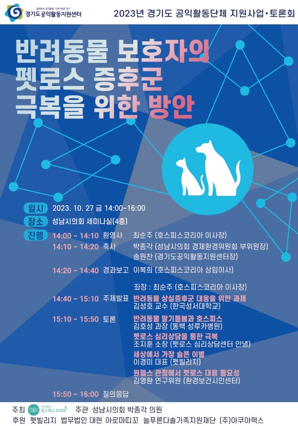 [2023. 10.27.] 반려동물 보호자의 펫로스 증후군 극복을 위한 방안 토론회 _ 호스피스코리아 2026-03-25 16:04 (수)