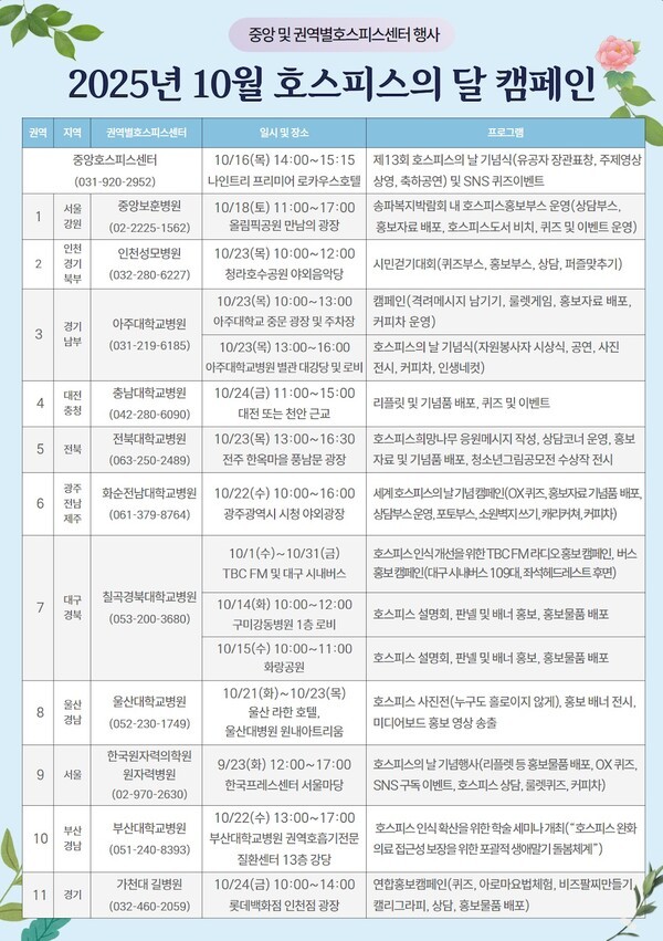 [2025. 10.] 10월 호스피스의 날 캠페인. 중앙 및 권역별호스피스센터 행사 안내 _ 중앙호스피스센터