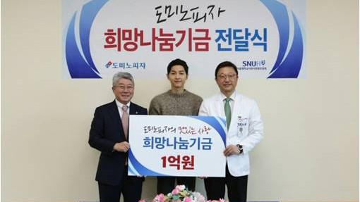 도미노피자(대표 오광현)는 24일 서울대학교 어린이병원에서 ‘희망나눔기금’ 전달식을 갖고 도미노피자 광고모델 배우 송중기와 함께 ‘희망나눔 피자파티’를 진행했다고 24일 밝혔다.
