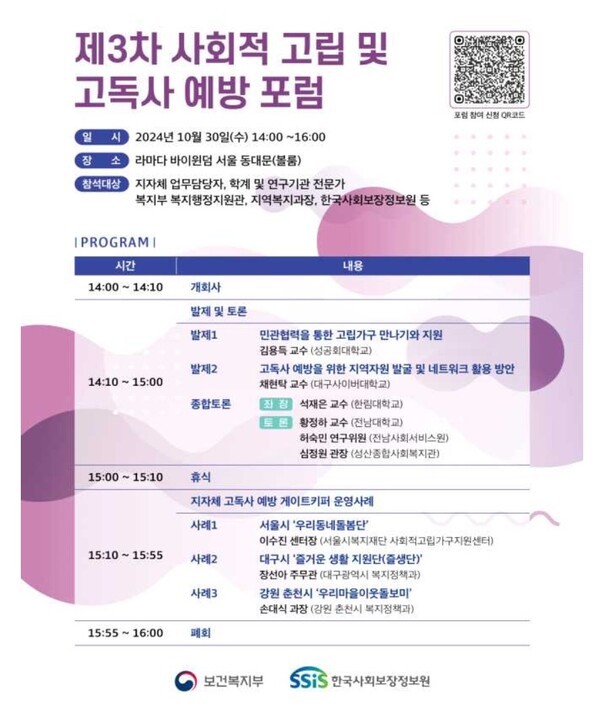 [2024. 10. 30.] 제3차 사회적 고립 및 고독사 예방 포럼 _ 보건복지부 2026-03-25 16:04 (수)