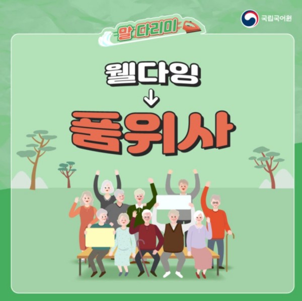 '웰다잉(well-dying)'이라는 용어를 우리말로 순화할 필요가 있다고 생각하며, 적절한 대체어로 '품위사(品位死)'를 선호한다는 설문조사 결과가 나왔다.