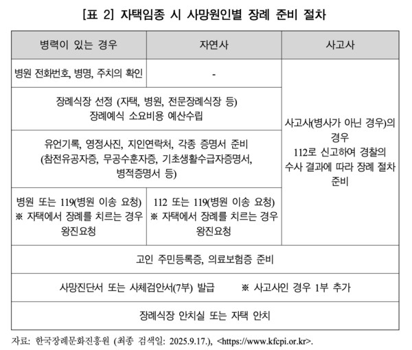 ◇ 한국, 인프라 부족·경직된 검안 절차 … “임종 돌봄 휴가·전담의사제 필요”