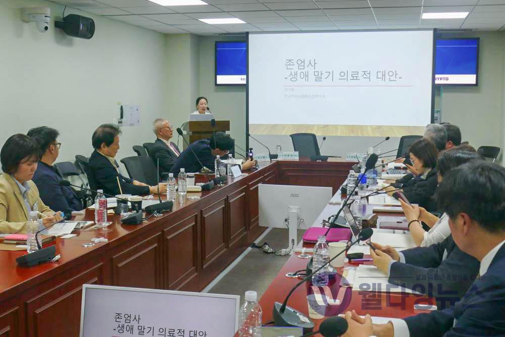 최다혜 한국존엄사협회장은 "존엄사(조력존엄사·조력사망·조력자살)를 생애 말기 의료적 대안의 하나로 제도화해야 한다"고 발제했다. 최 회장은 생명권의 개념을 단순한 생물학적 생명 유지를 넘어 인간의 존엄과 자기결정권을 포함하는 개념으로 확장해야 한다고 주장했다.