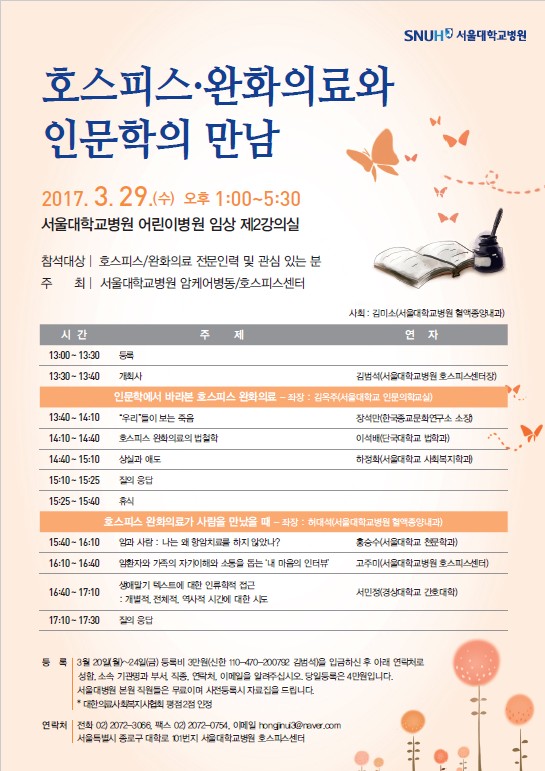서울대병원이 '호스피스·완화의료와 인문학의 만남'을 주제로 세미나를 개최한다.