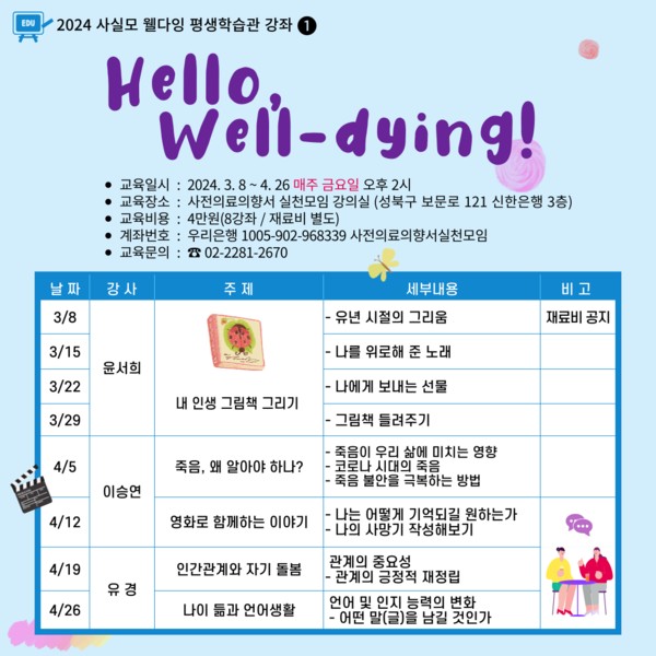 [2024. 3. 8. ~ 4. 26.] 웰다잉 평생학습관 'Hello, Well-dying!' _ 사전의료의향서 실천모임