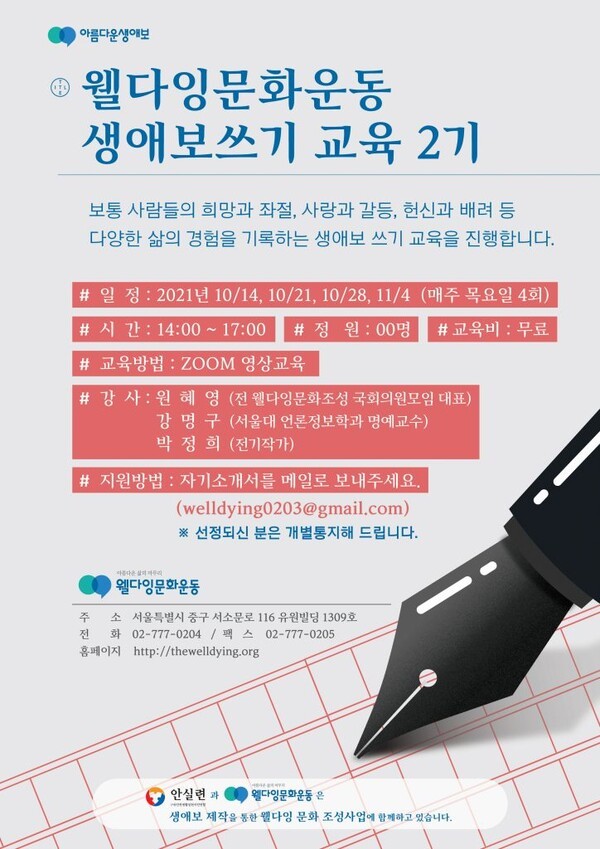 [2021. 10. 14. ~ 11. 4.] 생애보 쓰기 교육 2기 모집 _ 웰다잉문화운동 2026-03-25 16:04 (수)