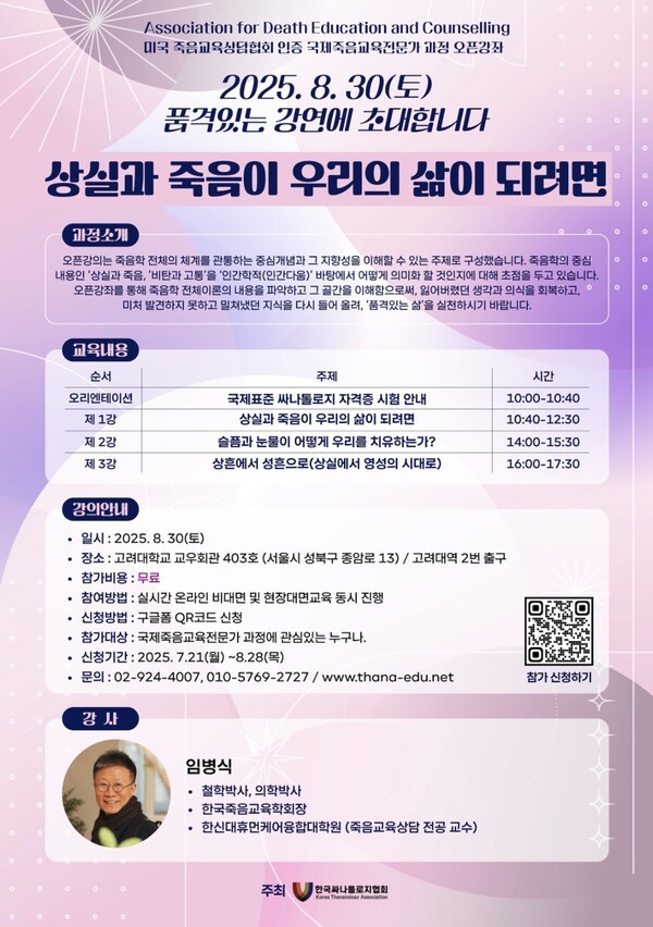 이번 주에는 웰다잉 예능 프로그램 첫방송, 수원시 웰다잉 체험 프로그램, 경남도 호스피스 시범사업 등 다양한 소식이 있었습니다.